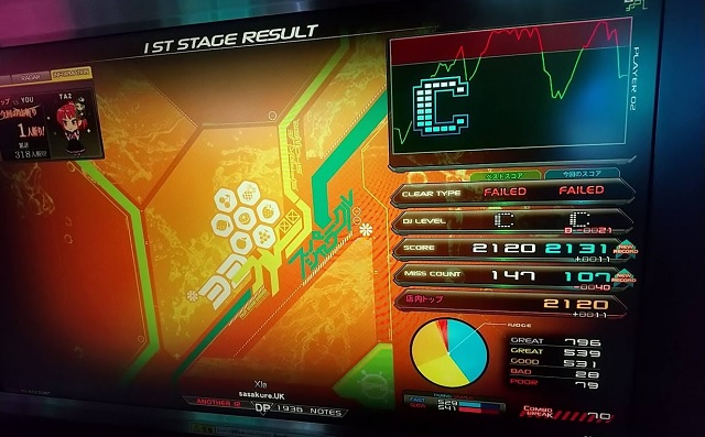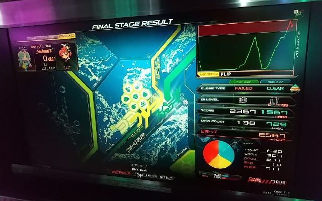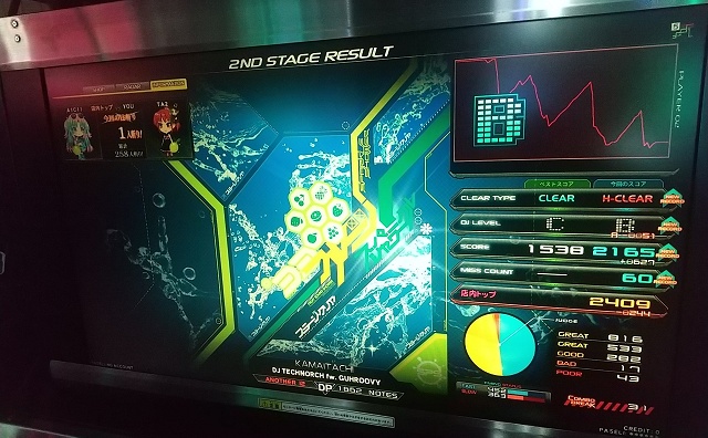 「Ember Lights」DPLをクリアして、満足しちゃって、今、日帰り温泉施設でぐったり寝ながらサイト更新してるんすよ。スタンプカードで無料入館じゃい。 うおぉ、めっちゃ面白いヘルチャージノートしとるぞ! 初見は難しく感じるけど、何度かやると押し方が分かる。 最後のヘルチャージノートが画面中央で光ってるのが煩わしいので左MIRRORオススメ。 クリアレートが正午の段階で21%台だったけど、「Umbral」DPLがクリア出来るなら余裕かと。非公式難易度☆12.3相当。