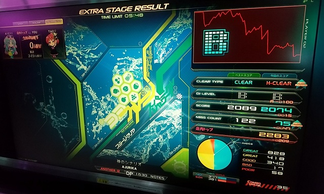 運良く繋がった回を一発でフルコンで抜けたカンジでした。運ゲーでフルコン狙うなよ自分、っていう。
