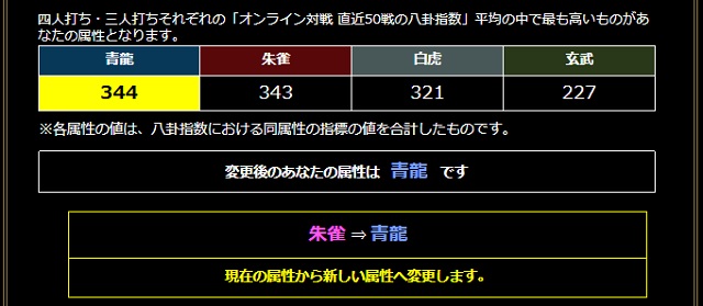 | ● | 【麻雀格闘倶楽部で四神属性を替えてみた】 ここ最近はペンタブ持つのも休養中。風邪気味だったのもあるし、旅行疲れも残ってるし。ゲーセン行ってのんびり麻雀ゲームでもやってる。 ![]() 麻雀格闘倶楽部には、アガリ率(朱雀):ドラ使用率(青龍):非振込率(玄武):平均アガリ翻(白虎)を数値化する「四神指数」というものがあったんですけど、 そこにアガリ速度、裏ドラ+一発率、平均振込点数、リーチ率が加わって「八卦指数」に変わったんですね。 四神属性(朱雀とか白虎とか)は公式サイト上で替えられるんですが、四神指数のときは累計ステータスで一番高い属性にしか替えられなかったので、 25年以上蓄積された「朱雀」245オーバーの数値を他の属性で塗り替えることが出来ず、結局、属性を替えられなかったのです。 これが八卦指数になってから、過去50戦の打ち筋だけを見るようになったのを知って、試しに属性変更してみた。変更先は、ドラ使用率が高かった青龍。 ![]() なんでそんなことやったのかってーと、同一の四神が4人同卓すると稀に発生する、GII大会「○○王決定戦」のトロフィーがどうなるのか気になったので。 結果、ゲーム上でトロフィー消えた! でも公式サイト上では朱雀王決定戦が残ってる! 裏ではトロフィーが残ったままになるのか。 黄龍レベルカンスト直前だけど、他にやることも無くなっていたので全属性のGIIトロフィーを集める遊びを狙っても良さそうだな。気が遠くなりそうだけど。 |