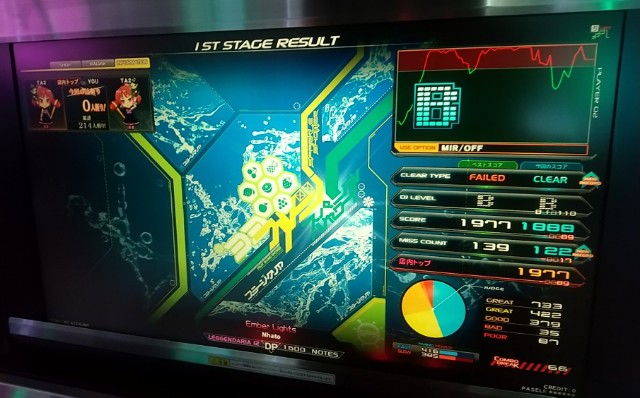 「Ember Lights」DPLをクリアして、満足しちゃって、今、日帰り温泉施設でぐったり寝ながらサイト更新してるんすよ。スタンプカードで無料入館じゃい。 うおぉ、めっちゃ面白いヘルチャージノートしとるぞ! 初見は難しく感じるけど、何度かやると押し方が分かる。 最後のヘルチャージノートが画面中央で光ってるのが煩わしいので左MIRRORオススメ。 クリアレートが正午の段階で21%台だったけど、「Umbral」DPLがクリア出来るなら余裕かと。非公式難易度☆12.3相当。